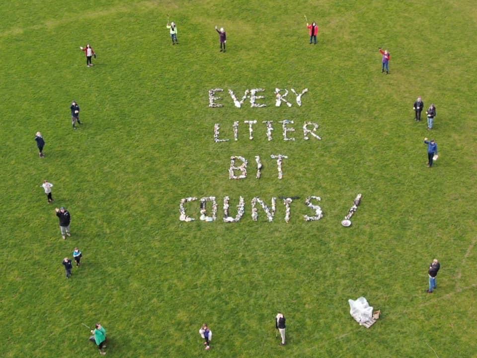 CAPTION: Volunteers accessed the local cricket and football club  where litter was piled together to form the message: Every Litter Bit Counts!