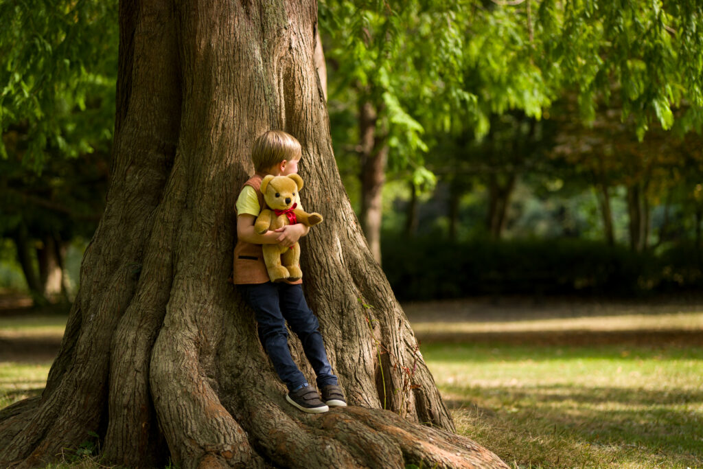 A little boy with his treasured London Gold bear.