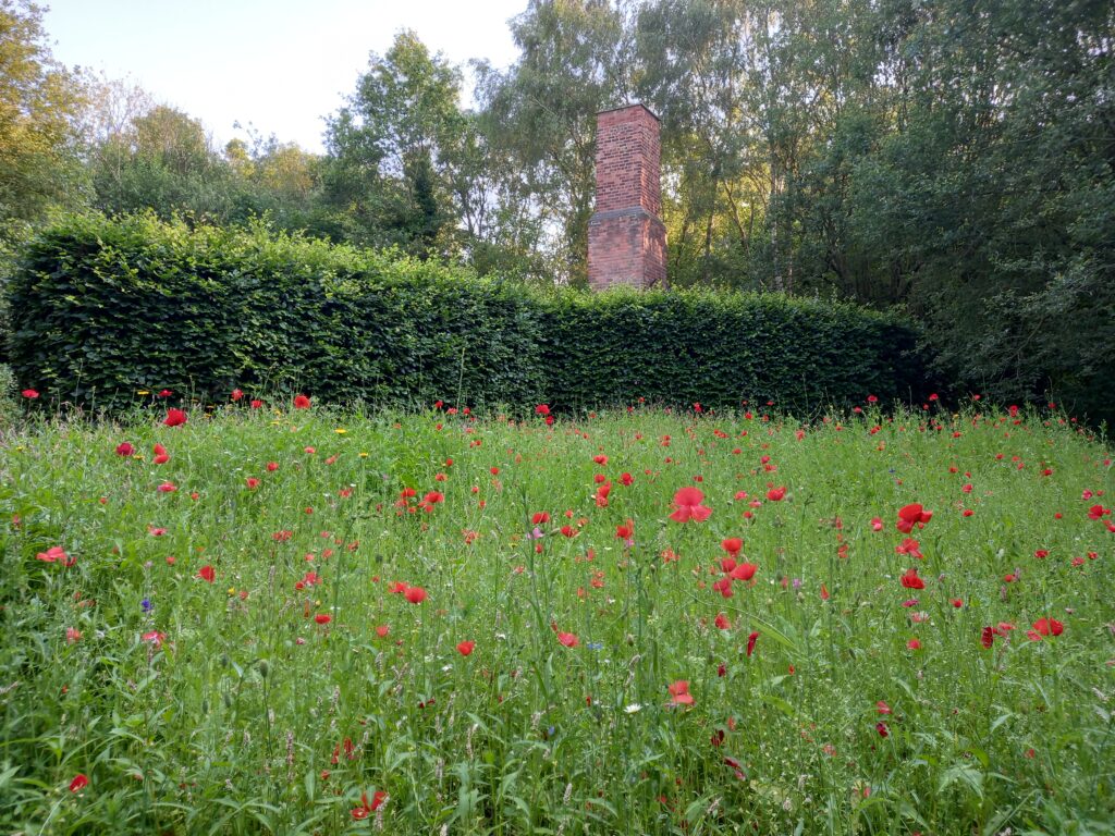 Few traces remain, save for the old cookhouse chimney preserved as a war memorial on the Russell Close side of the park and the old concrete roads on the Hobbins side. The memorial was restored in 2013 and now includes a plaque honouring the former RAF personnel. The current car park is on one of the camp’s four parade grounds. FOS have created a series of six information panels about the history. Because of these past links, teams from RAF Cosford are involved in some of the Friends’ work.