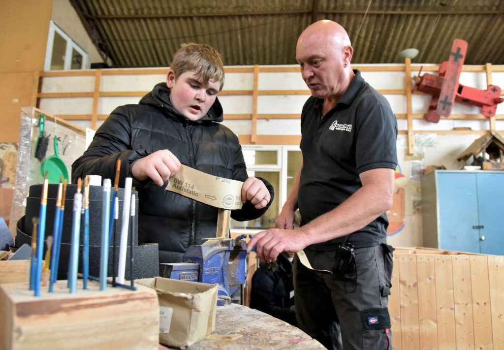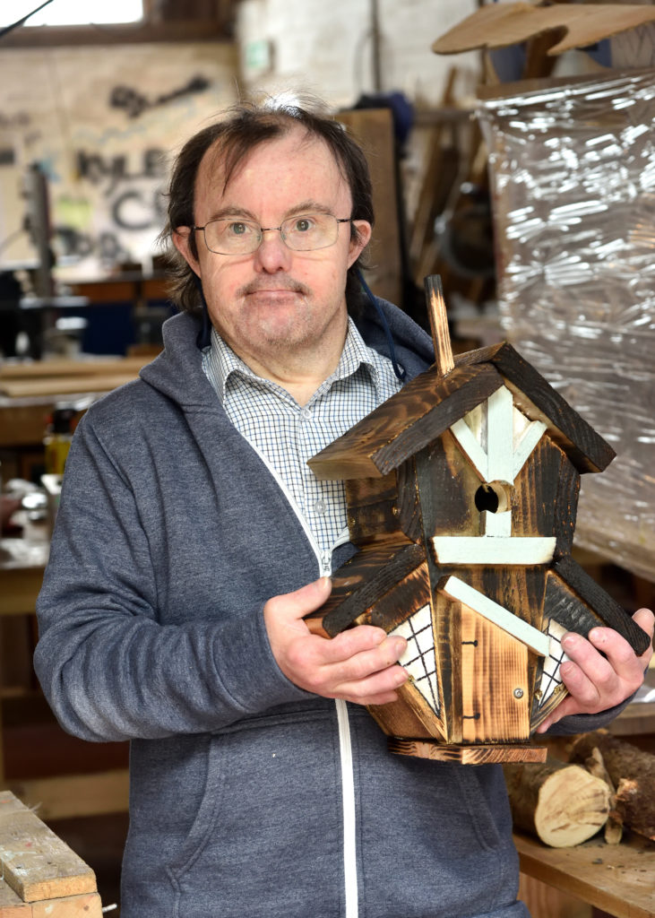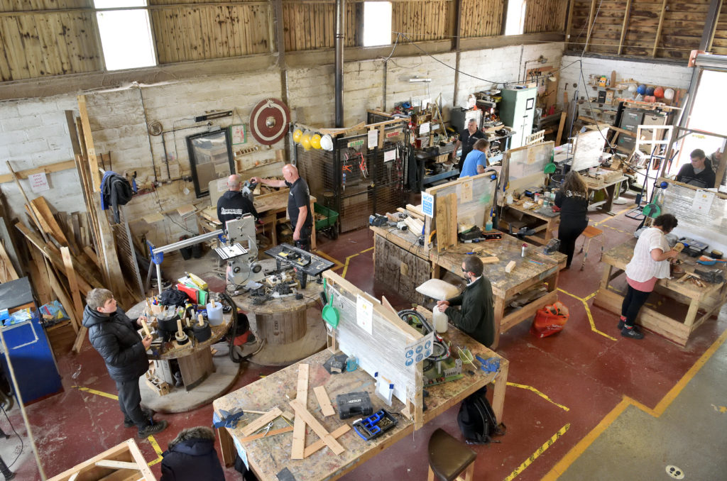 “Wooden gates, dog kennels, dovecotes, doors, bookshelves, cabinets, jewellery boxes, you name it, we’ve made it,” he says. “Whatever the service user wishes to make, then we help them, showing them the correct way to make their craft item and teaching them how to use modern methods and up-to-date tools.